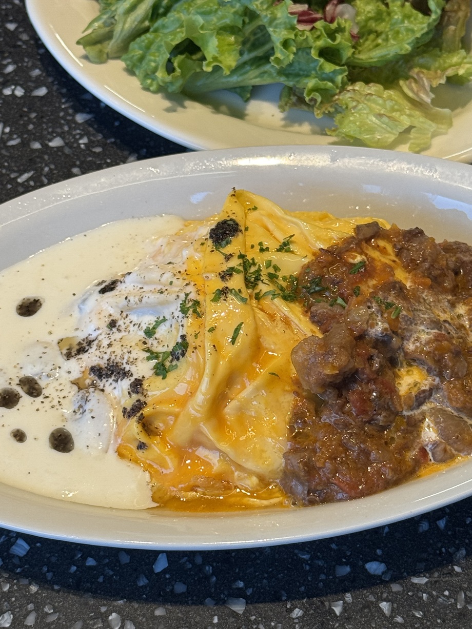 人気のWソースオムライスのソースが秋の味覚のトリュフとマッシュルームのクリームソースに変わりました。
